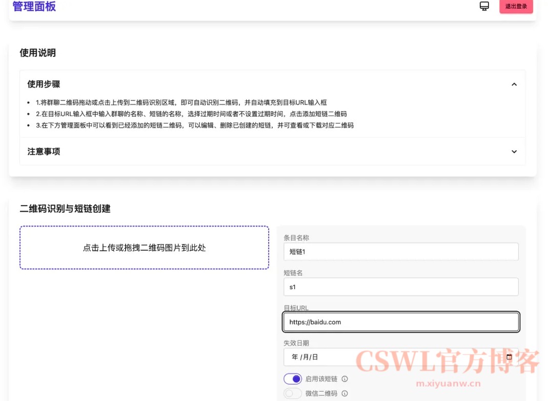 • 管理后台:提供管理后台,用户可以随时更新二维码和短链接信息。