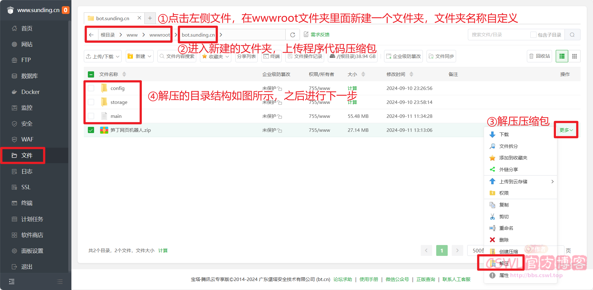 1. 新建目录,上传程序压缩包并解压 新建目录