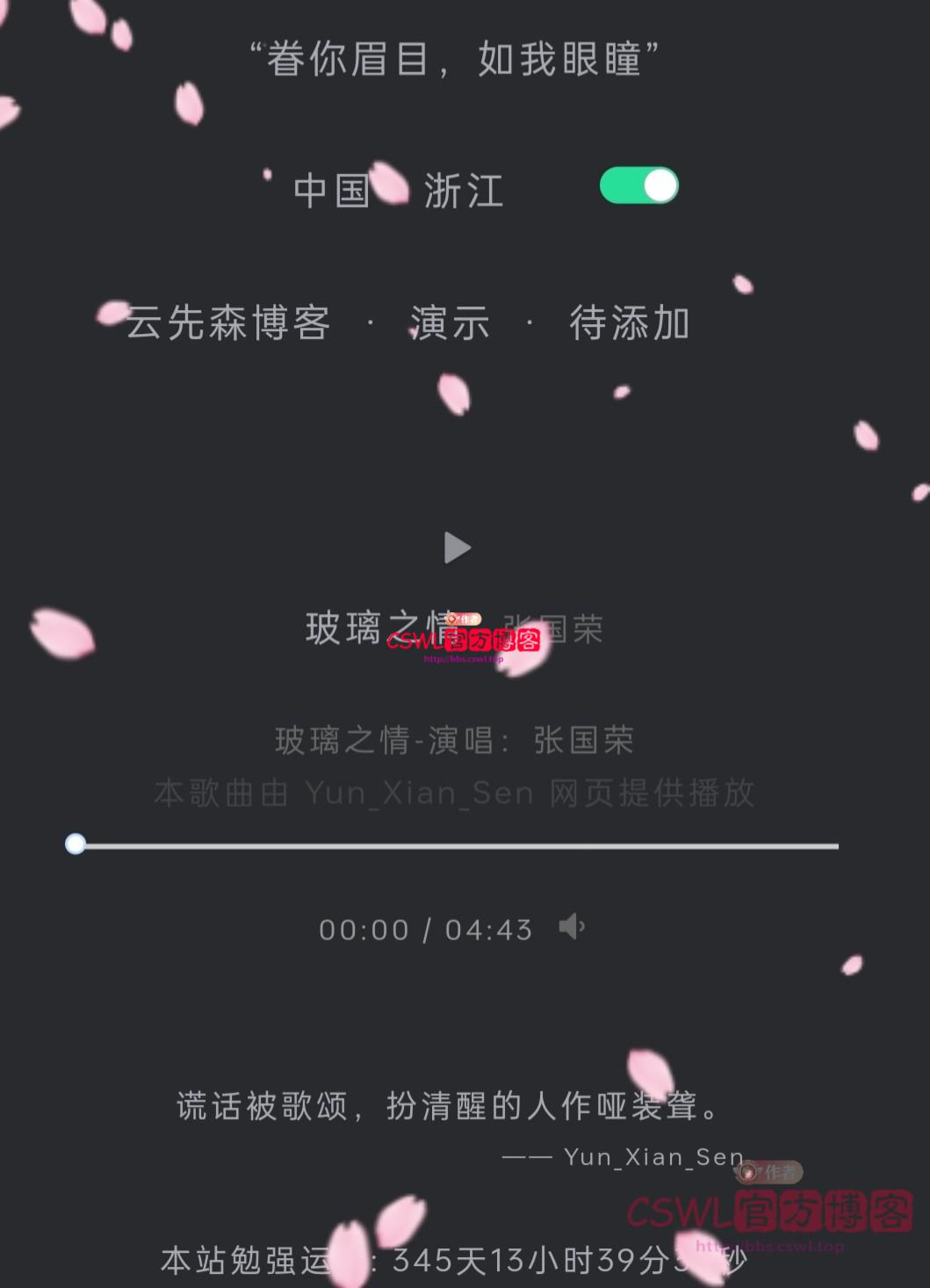 原创支持音乐日间夜间模式动态樱花飘落个人主页源码