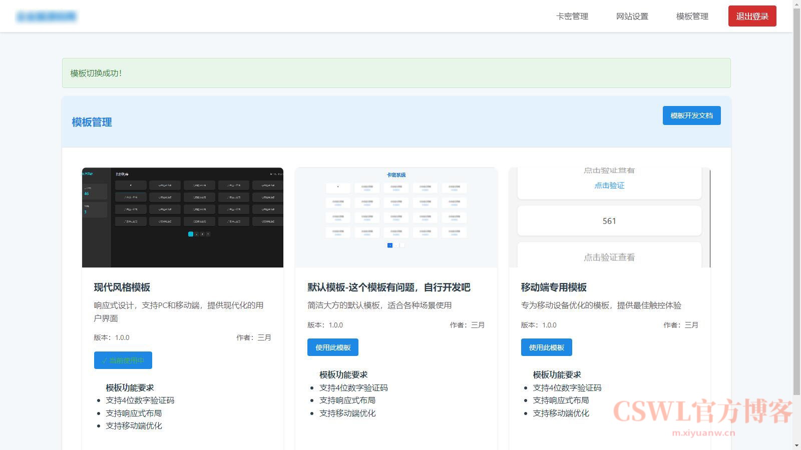 卡密管理和验证,多模板支持,响应式设计,验证码保护,防刷机制,简洁的用户界面,