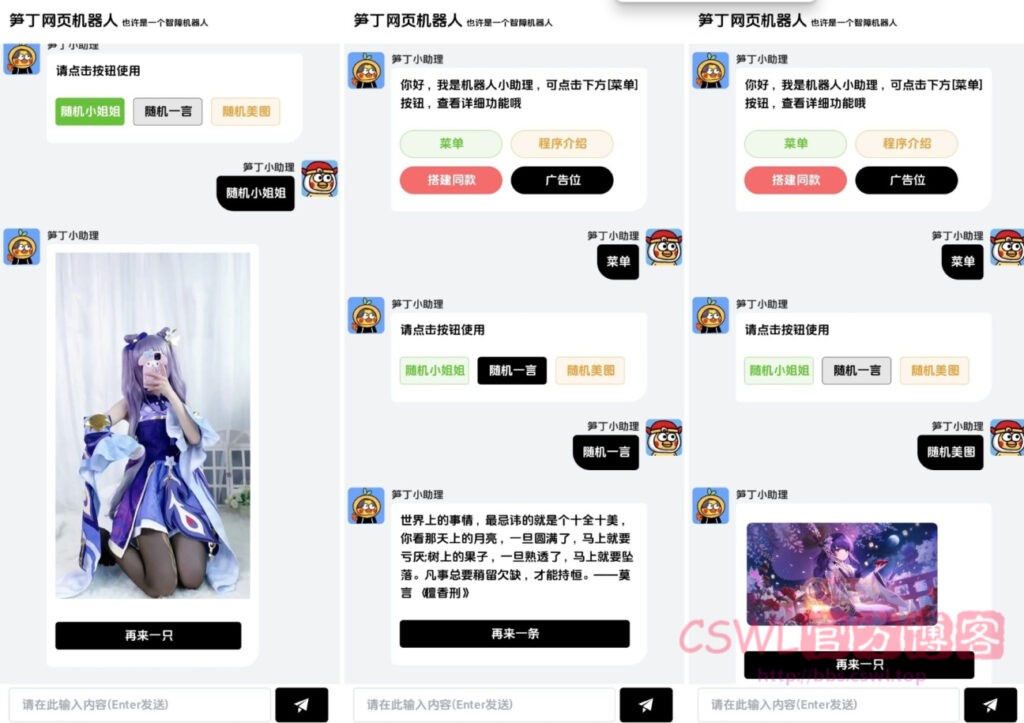 网页机器人一款可设置自动回复,默认消息,调用自定义API接口的网页机器人。