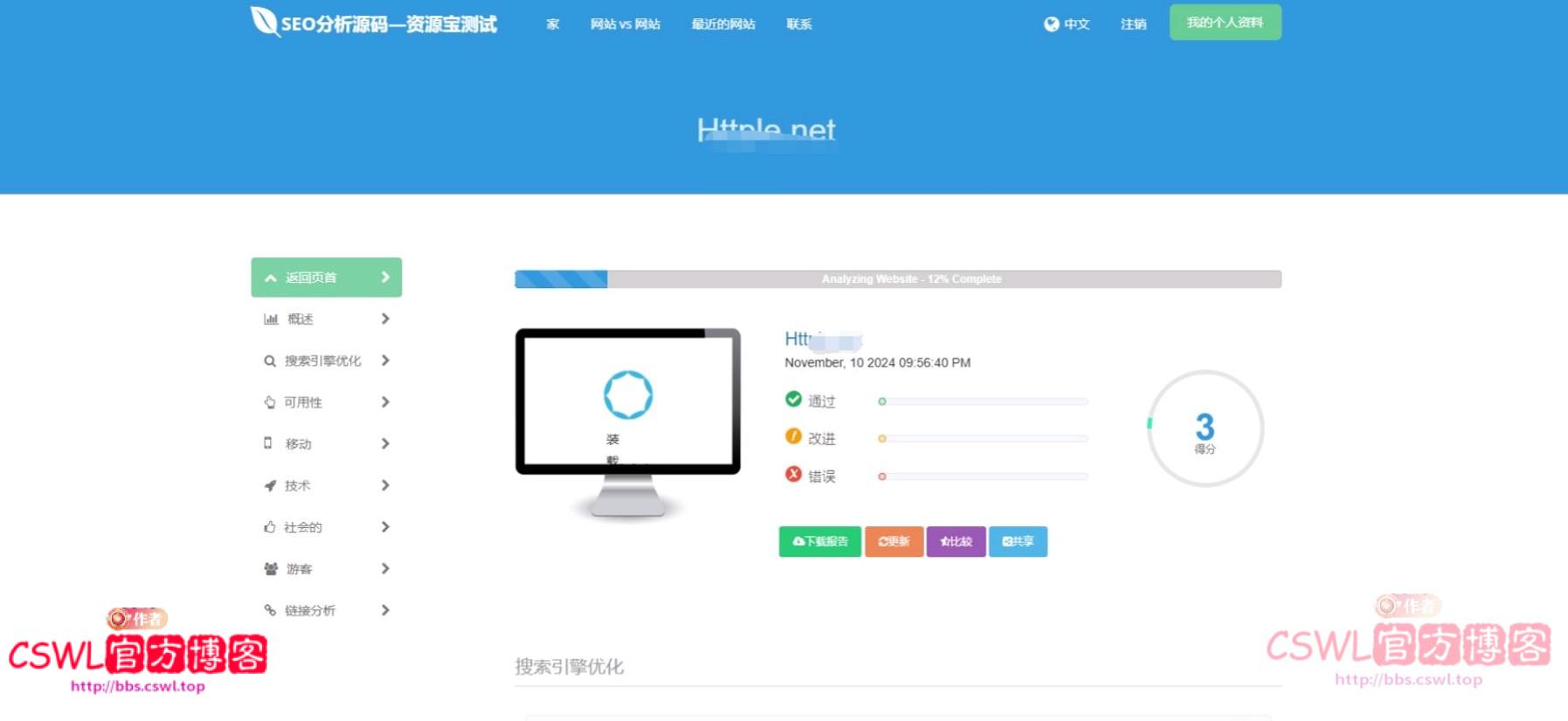 高级 SEO 在线优化检测分析源码,获得更高收录提示:分析网站需要大量服务器资源,小服务器使用估计有点卡!
